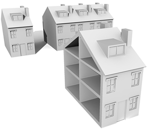 een rijtje rug-aan-rug-woningen: ![]() |