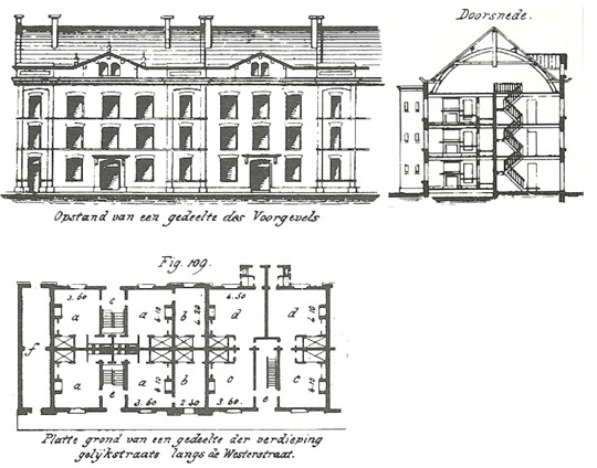 rug-aan-rug-woningen, oude tekening behorende bij de verbouwing van de concordiahofjes, amsterdam (herbert van der brugghen architect): ![]() |