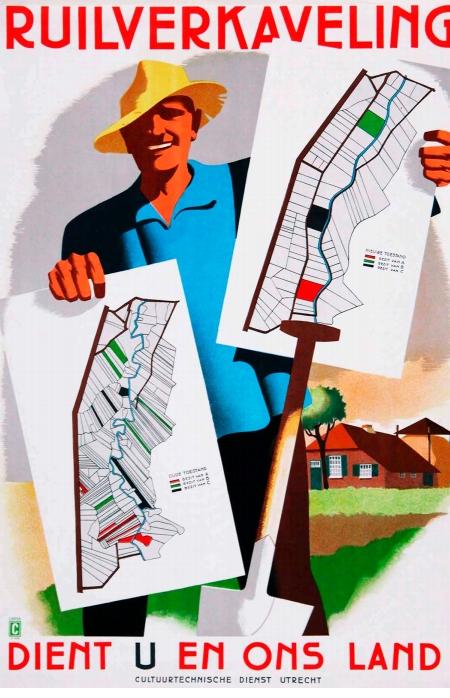 poster uit 1946 waarmee de ruilverkaveling gepromoot werd (affiche via cultureel erfgoed):![]() |