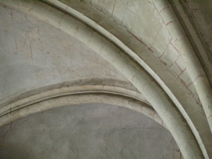 of muur) aangebouwd en wordt soms voortgezet in de ribben van het
