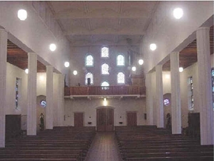 Segmentbogen (de bogen bij het altaar en van de ramen zijn rondbogen)