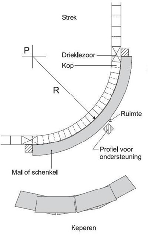 schenkel om een boogconstructie te maken (koninklijke nederlandse bouwkeramiek knb uit het boek vakkennis metselen van technische boekhandel waltman): ![]() |