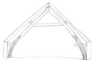 - twee boogdelen die bovenaan elkaar raken (en zo een soort spitsboog vormen; met het oog op de druk van het dak werd deze vorm aanbevolen)