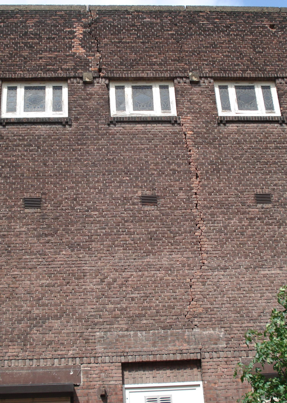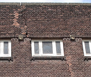 een aantal doorgaande scheuren in metselwerk; klik voor groter! (foto joostdevree): ![]() |