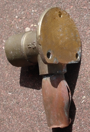scheur in een buiten-waterleiding van een buitenkraan, na een vorstperiode (ooit vergeten af te tappen, kraantje toen maar paar cm naar onder geplaatst, foto joostdevree): ![]() |