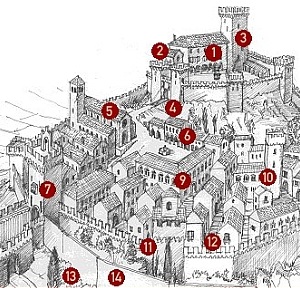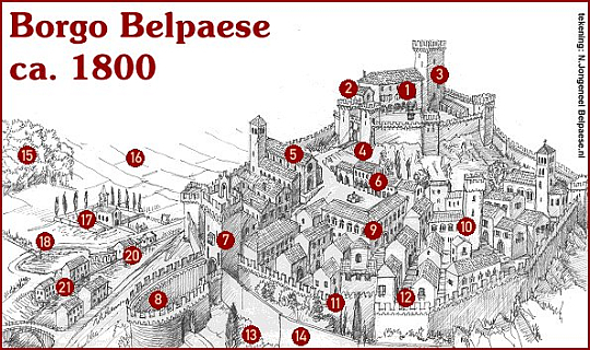 nummer 14 geeft een mogelijke locatie aan van de schildmuur van het borgo belpaese; klik voor groter! (afbeelding n. jongeneel, belpaese):![]() |