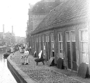 foto van rond 1900 met diverse schotten, uiterstegracht, leiden; klik voor de bron (detail van beeldarchief gn003246, erfgoed leiden): ![]() |