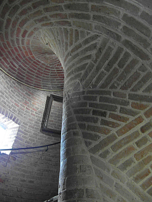 Soms werd bij deze soort wenteltrappen in het metselwerk van de kolom
