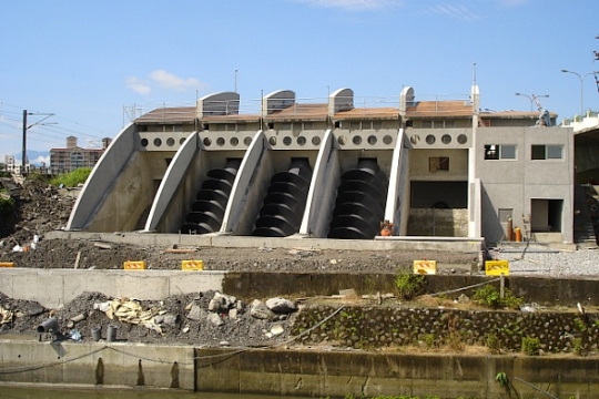 schroefvijzels bij een in aanbouw zijnd vijzelstation; klik voor groter (lara-engineering): ![]() |