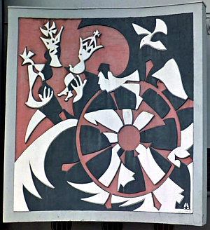 een driekleurige, hedendaagse, waarschijnlijk echte sgraffito (klik voor de locatie in google maps): ![]() |