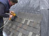 Eigenlijk worden bitumeuze shingles alleen nog maar voor tuinhuisjes e.d. gebruikt en dan vaak nog in de versie waarbij een rij shingles aan één stuk zitten zoals op de foto hieronder te zien is (en waarom ook niet, gemak dient de mens, het geheel is dan ook "rechter").