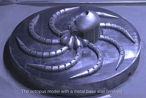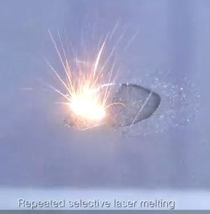 sls 3d-printen aan het werk, steeds met het bovenste laagje en resultaat van het 3d-printen; klik voor het filmpje (vanaf 1:09 min het echte printen) (protofab 3d-printing): ![]() |