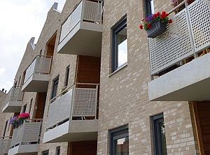 een aantal afbeeldingen met meer of minder gesinterde bakstenen (klik voor groter): voorbeeld van een gevel met af en toe een extra goed gesinterde baksteen; intrigerend, eigenwijs, toch rustig uiterlijk (uit brochure ontwerp en uitvoeringsrichtlijnen baksteen buitengevels van koninklijk nederlandse bouwkeramiek knb): ![]() |