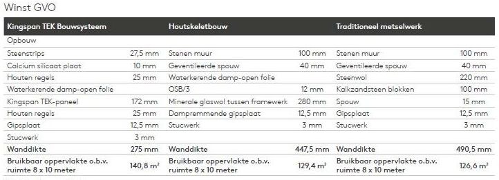 geveldikte kingspan-tek ten opzichte van houtskeletbouw en traditioneel metselwerk (en daarmee ook meer gvo, gebruiksvloeroppervlakte); klik voor de volledige afbeelding! (kingspan tek): ![]() |