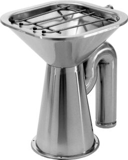 meestal voorzien van emmerrooster en spoelinstallatie.