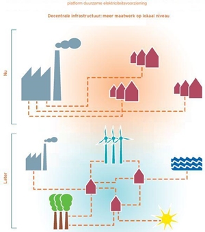 decentrale infrastructuur: meer maatwerk op lokaal niveau, mede dankzij de smart grids; klik voor groter!: ![]() |