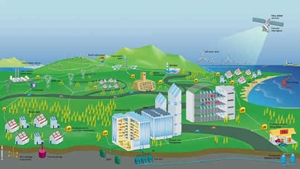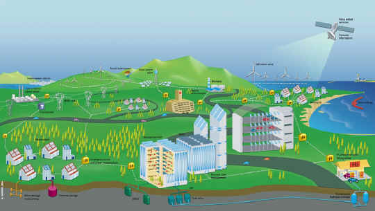 uitbeelding van combinatie van energiebronnen en een smart grid; klik voor groter: ![]() |