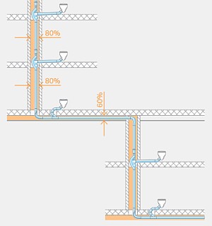 "Bij hoge gebouwen waarbij per verdieping veel afvalwater op de standleiding