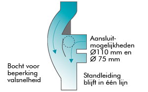 wordt geloosd, kan het water uit verschillende leidingen als het ware met elkaar in botsing komen op de plaats waar deze op de standleiding is aangesloten. Dit verstoort een goede doorstroming."