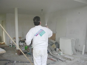 Tegenwoordig dient erbij het vervaardigen van een wand in spack spuitwerk een mondkapje gedragen te worden.
