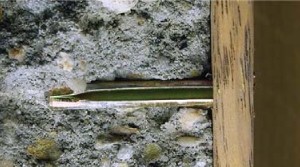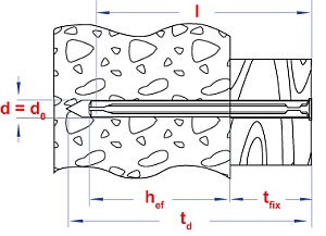 toepassing van spanhuls in beton bij bijvoorbeeld bevestiging van een plaat tegen het beton (pgb): ![]() |