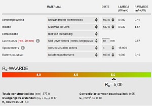 berekende rc = 5 bij 137 mm isover multimax ultra spouwmuurisolatie; klik voor groter! (isover): ![]() |