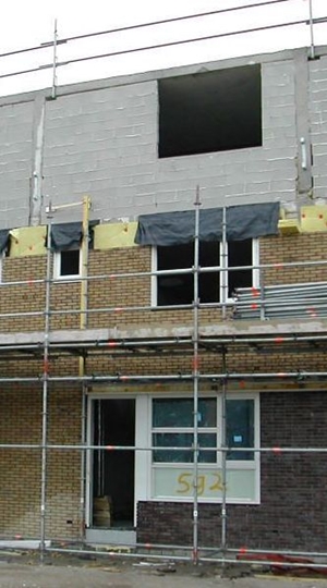 Een voorbeeld van een ankerloze spouwmuur: een woningscheidende wand van dubbele