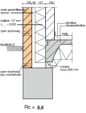 spouw waardoor de thermische isolatie aanzienlijk vermindert; zie de