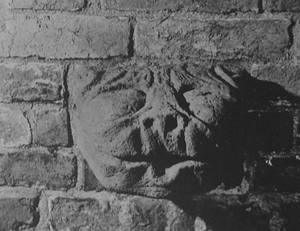spuwer aan de buitenzijde van de koormuur van de piscina in de kerk in garmerwolde, groningen (zie ook de afbeeldingen bij piscina), uit het boek "vroomheid in hout en steen" van drs. r. steensma: ![]() |