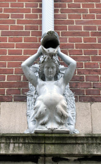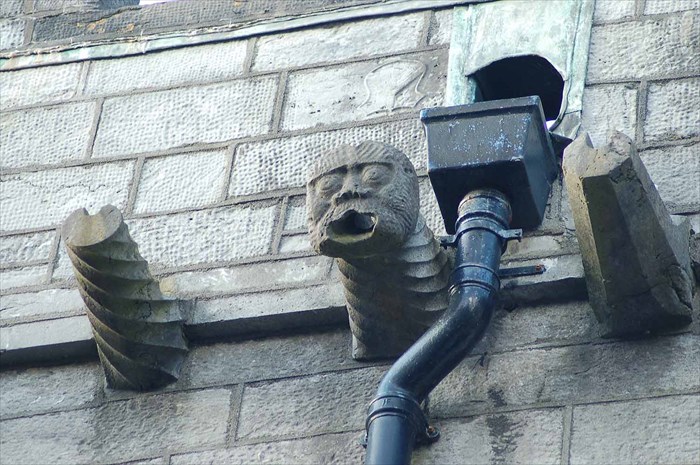 waterspuwer met enigszins gedraaide kop, om de gevel te ontzien, pandhof achter de dom, utrecht; klik voor groter (foto joostdevree): ![]() |