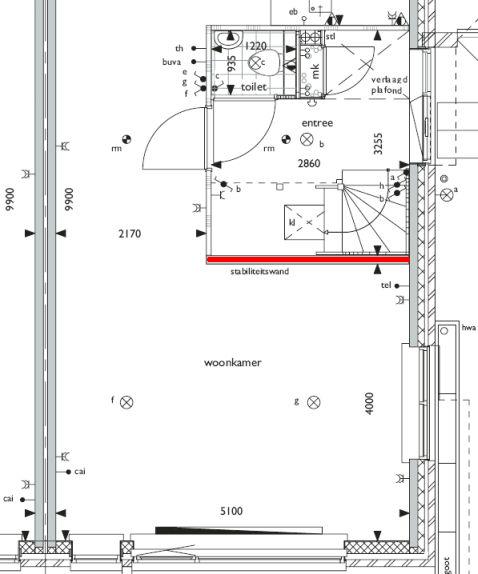 verdiepingen kan een doorlopende dikke stabiliteitswand als decentrale