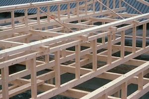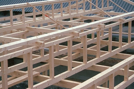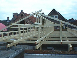 De foto's tonen de kapconstructie van de dansschool Grapéli van architect Rob de Vries en constructeur G. Suurd (Ouddorp NH).