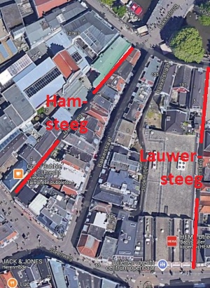 voorbeelden van stegen in het centrum van utrecht, tussen oudegracht en steenweg (klik hier voor de locatie in google maps): ![]() |