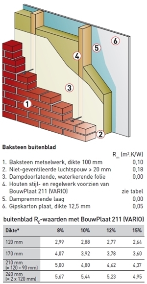 toegepast, maar die deken kon nat worden als de buitengevel verzadigd was van water door