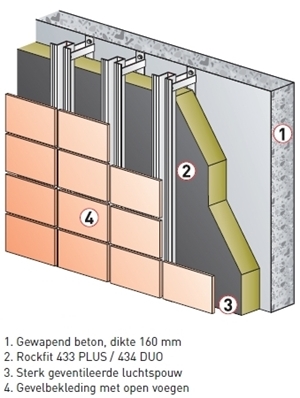 steenwol bij een open vliesgevel, gevelplaat met cachering (rockwool): ![]() |