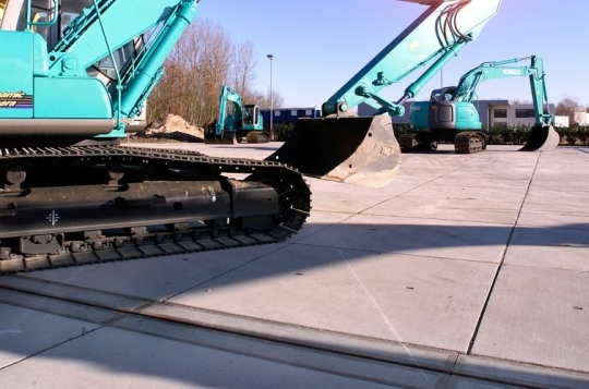 Er zijn diverse maten betonplaten; de meest gebruikte is die van 200 cm x 200 cm x 16 cm.