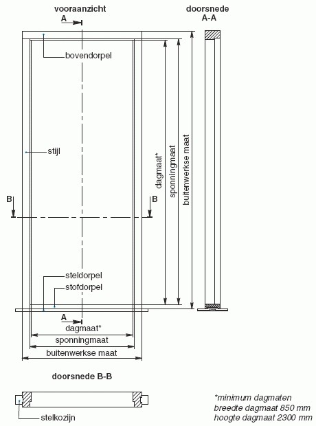 steldorpel en stelkozijn (stelkozijn zie doorsnede onderaan de afbeelding; cofra): ![]() |