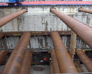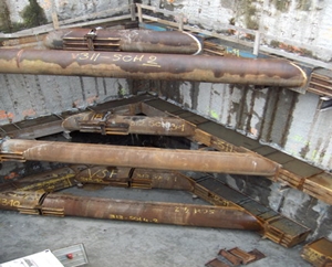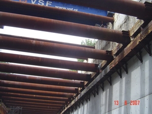 voornamelijk horizontale stempels die in een bouwkuip ervoor zorgen dat de wanden van de bouwkuip (de
