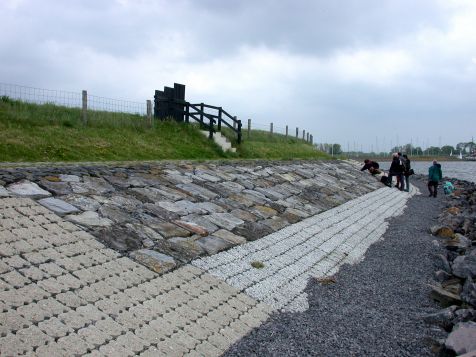 klik op de afbeeldingen voor groter stenendijk, verzwaarde dijk bij wieringen; verschillende soorten steen zijn toegepast, waaronder natuursteen en betonblokken (foto laurens sparrius, met dank aan nature today): ![]() |