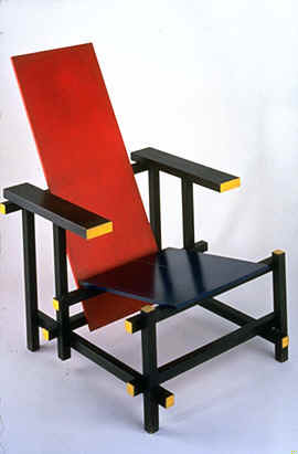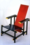 Rietvelds stoel rood-en-blauw (ontwerp 1918) en de zig-zag-stoel (ontwerp 1932) zijn