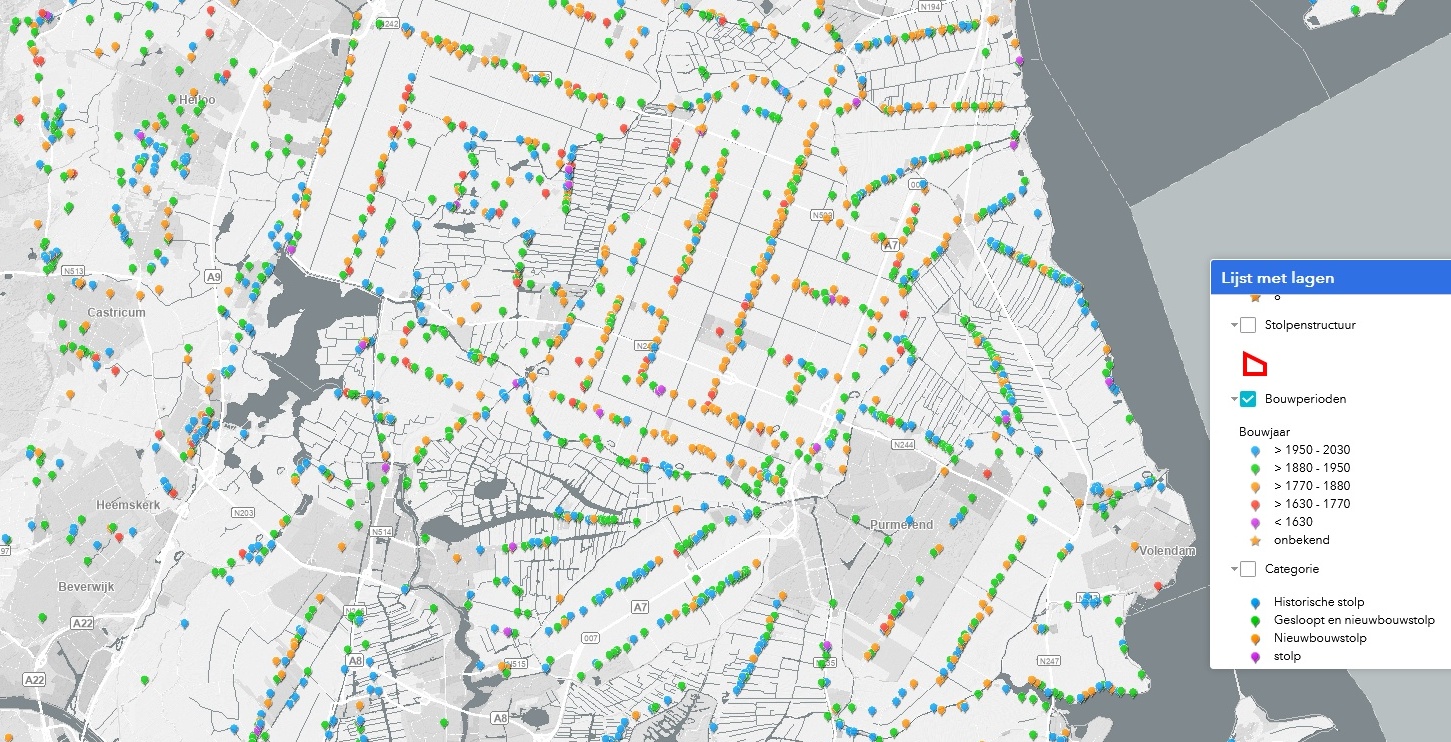 verspreiding van de stolpen (kaartenportaal noord-holland): ![]() |
