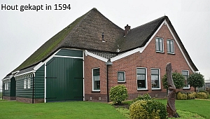 stolpboerderij met uitgebouwd woongedeelte en inrij-deuren (hooi-deuren, baanders) met voldoende hoogte voor de hooiwagen; hout voor het gebint van "het vierkant"gekapt in 1594; gevels metselwerk in 20e eeuw vernieuwd; deze stolpboerderij staat in wognum (foto dieuwertje duijn, archeologie west-friesland): ![]() |