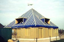 (piramidedak), oorspronkelijk ontstaan met de gedachte aan een hooiberg die het