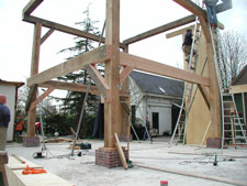 de foto met het nieuwe houten skelet is duidelijk het vierkante middengedeelte