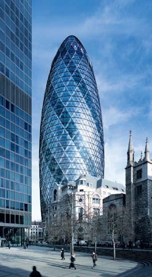 swiss-re gebouw in londen, architect norman foster, opgeleverd in 2004: ![]() |
