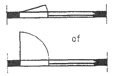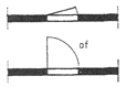 deur of branddeur, zelfsluitend (een sinusoïde geeft het zelfsluitende karakter aan; soms geeft een zaagtand-vorm aan dat de deur zelfsluitend is, voorbeeld) |