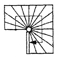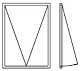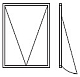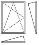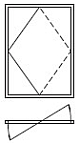 symbolen raam diagonale lijnen geven draairichting raam aan; de punt van de driehoek geeft de raamkruk aan; doorgetrokken lijn: raam opent naar buiten; onderbroken lijn: raam opent naar binnen |