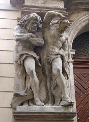 | twee van de vele atlanten van het barokpaleis clam-gallasuv, praag, begin 18e eeuw (katerina davidová, turistika.cz):  |
