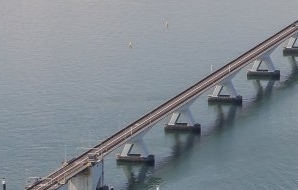 | kokerliggerbrug, een balk als kokerligger: het oertype van de kokerligger-brug, de brittania bridge over de straat menai tussen wales en het eiland anglesey, ontwerp van robert stephenson uit 1846, door brand verwoest in 1970; de gehele hoogte van de brug is een koker (wikipedia over de brittania bridge):  |