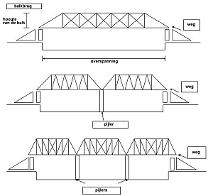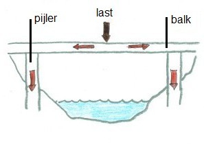 De belasting op de brug wordt gedragen door de balk. Bij een te grote overspanning breekt de balk.